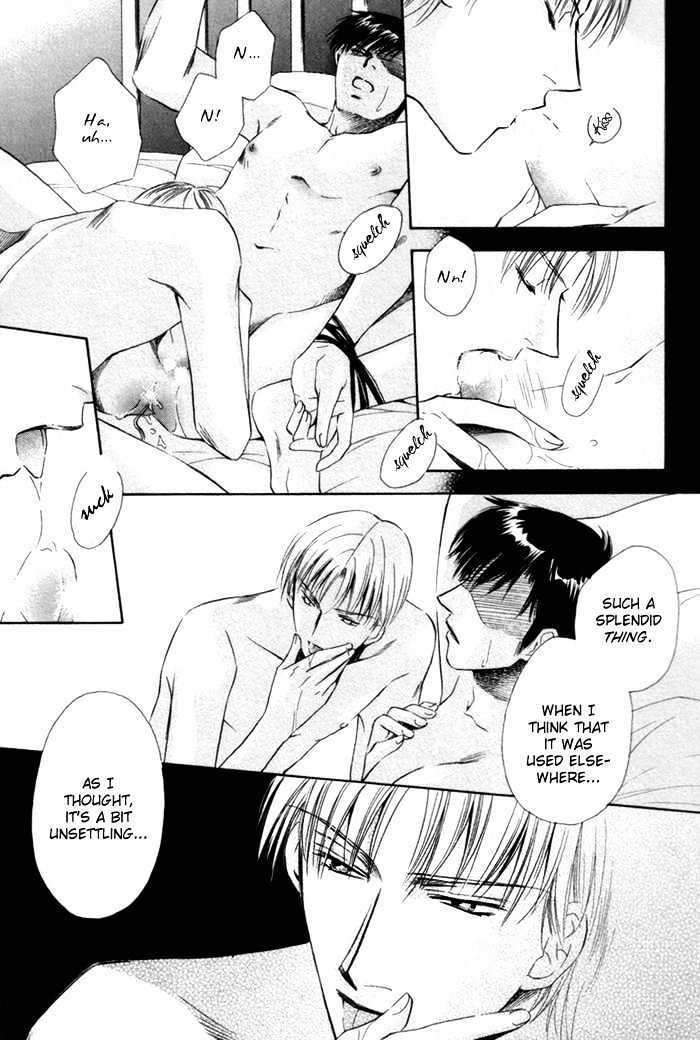 Chapter 1: Kanbe is in love with his boss, Tatsuya, who is sexually harassing him, so he decides to visit a fortune teller. Will the fortune teller be able to help him? Chapter 2: Tatsuya takes Kanbe to a high class party where they meet Kazuki- Tatsuya's old student from when he was a tutor. Kazuki might look young and innocent but the truth is that he's a little devil with a sweet face and now he's dying to nail Kanbe! Could this be a threesome? Chapter 3: When Kanbe negotiates a contract with another company, the handsome manager has one condition before accepting the contract- Kanbe must sleep with him! What will Tatsuya do when he finds out about this indecent proposal? Chapter 4: Homeroom teacher and nice guy Tokunaga agreed to go out with his slacker student Mochizuki if he will start being more serious about school. One day, Mochizuki overhears Tokunaga talking about him with another teacher and it looks like he's not such a nice guy after all?! What will Mochizuki do? Chapter 5: Shibata Keigo, a top who likes the "young, short and cute" type, finds himself attracted to Saiga Naoki, his suburdiate at work. Saiga is not really his type- he's beautiful, tall and older than what Shibata usually goes for but it looks like Saiga has a crush on him and even asks him to accompany him on a business trip! Shibata agrees but he's in for a big surprise when the two finally get into bed. Chapter 6: Saiga discovers that Shibata has been fooling around with cute young guys again. Punishment is in order! Chapter 7: It looks like Shibata can't help being attracted to cute boys. Saiga has some plans to settle this once and for all... (from B-U)