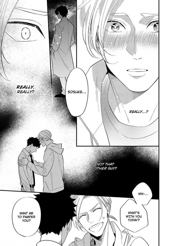 From Renta: Kippei is a bum, flitting from one partner to another. When his girlfriend dumps him at a cafe, he notices the same thing happening with a male couple at the next table. Deciding to forget their misery together, Kippei and the average-looking dumpee, Sosuke, head to a hotel. Once there, Kippei is floored to see how aggressive Sosuke actually is. This is a heartrending, raunchy story about a playboy who's never known love and strait-laced doctor. The latter's unpredictable personality will make you faint!