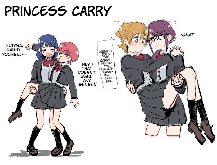 The Girls of Revue Starlight holding their partners in a princess carry (The original post has since been deleted.)