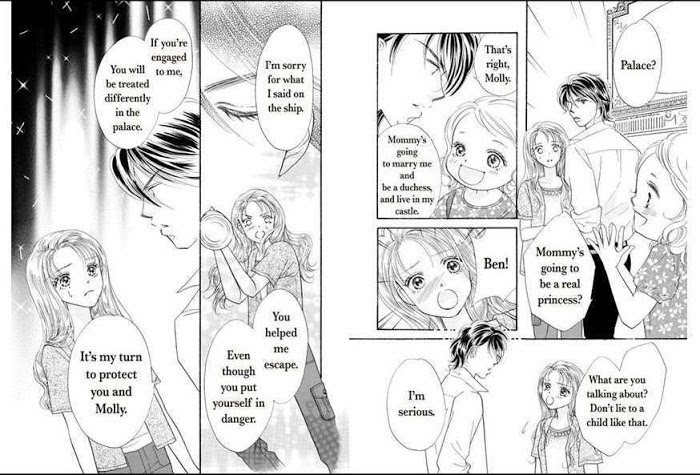 Was I kidnapped by an angel? While Edinburg kingdom is rocked by the disappearance of the king, Ben, a marine acting as a double for his cousin, Prince Nicholas, is kidnapped. As he lies strapped to a bed, he is met by a beautiful woman smelling of roses. Seeing guilt in her eyes, Ben is sure she's taking part in this kidnapping against her will. Whatever her circumstances, Ben vows to protect her! Part 3 of the "Wedding of the Century Kingdom of Edinburg" 4-part miniseries! (Source: Shojo-Manhwa Scans)