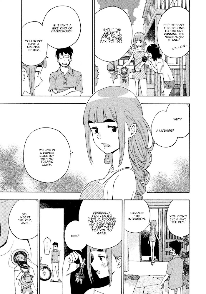 Private Earth manga summary: The day started as any other day for the three sisters, Tsumugi, Momo, and Rin, and their father. But they soon learn that everyone has disappeared and they appear to be the only humans left on earth. How will they survive?