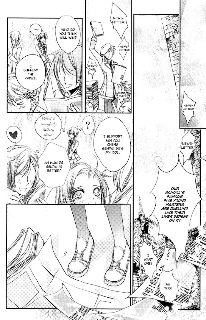 From Aerandria Scans: A super prestigous school that will make you jealous! A complicated student life is about to begin! Cai Ying is ending her study tour in England with her good friend Gong Liang Hui, taking Elizabeth High's ocean liner back to school. As she is ready to board the ship at the harbor, she bumps into a mysterious handsome man who is being chased--?!