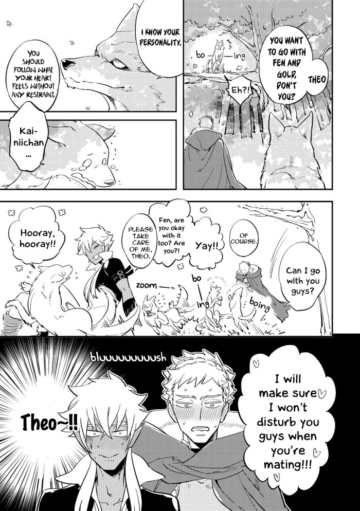Red Hood manga summary: Gold, a witch hunter, who had been mistaken as the witch's servant for the red hood he wears is attacked by wolves. Realizing that they are also targeting the witch, Gold calms down the werewolf, Fen, apologizing for the misunderstanding. Teaming up to kill the witch, Gold kisses Fen, by doing so he is able to absorb his healing ability. Fen is furious , but it is a journey where they live a life to conquer together. If Gold gets injured, all he needs to do is take body fluids from Fen. Werewolf x Hyperbolic Little Red Riding Hood. The way of the witch killing journey is ─ ─ !?