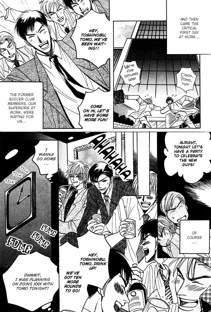 A collection of five short stories: 1) Rikara Seiten is the illegitimate son of the King. He's considered to be an insult to his kind and his brothers make fun of him by humiliating him and his position. It's thanks to Rikara, a prisoner (or as Seiten would say: a fallen angel) that he finds the strength to fight and win back his life. 2) Rougoku ni Saku Hana A stern magistrate, Hakuto, is habouring unrequitted love for a superior and seeks a quiet spot i which to shed his tears but finds more than he imagined in the form of forgotten prisoner Doukoku. 3) Lingering Attachment (Miren) After all else is destroyed a general and his lord come to know each other's feelings. 4) Bed de Kimi to After graduating high school two soccer team mates enjoy life as newly weds but have problems finding time to be alone. 5) Tag Out! When baseball captain Tamaki hit a stray ball into the principal's office he never expected it would lead to him becoming a servant for the young, handsome and rich school alumni Shinobu. NOTE: Chapters 1-3 are set in ancient China, whereas chapters 4-5 are set in the modern day Japan. (Source: M-U)