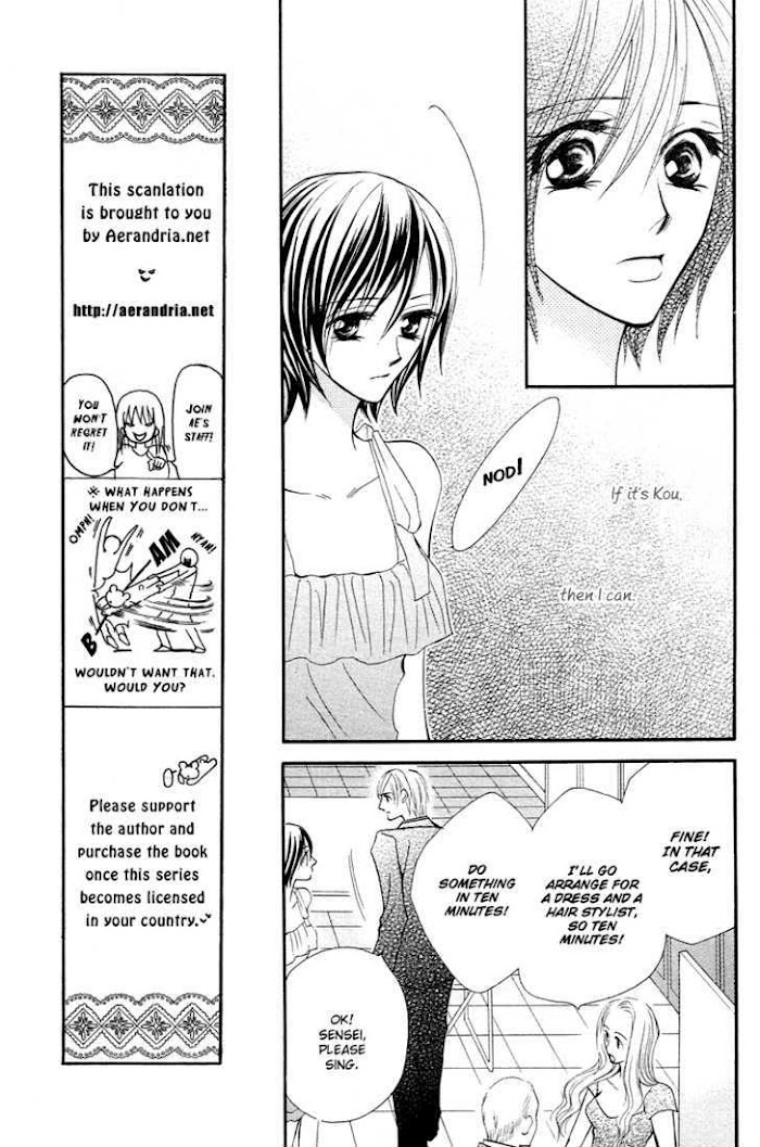 Tezuka Ayane was aiming to become a pianist. She was also working as a part-time home-tutor when she met Narumiya Kou. She found herself falling for him, but there was a difference in their ages and her feelings didn't seem to be returned. Six years have passed since then and Ayane is a music teacher in an all-girls school. One day, she goes to a jazz-piano audition and meets there Kou..! (Aerandria Scans)