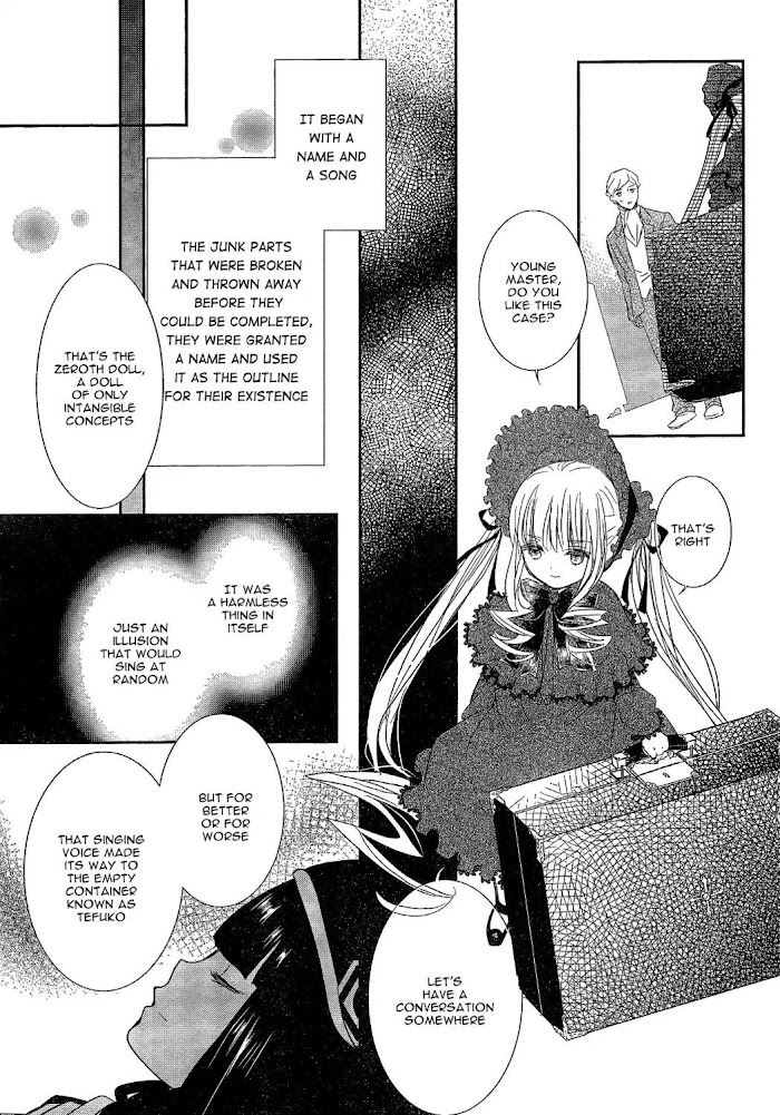 Rozen Maiden Zero is set in Tokyo during Japan's Taisho era. It follows a clumsy girl named Okiku who moves from the countryside to work in a large western-style mansion in the imperial capital. One day, she discovers a mysterious doll in the mansion's attic.