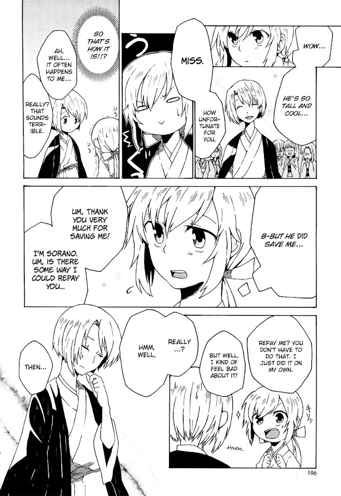 Set in feudal Japan, Sorano is often mistaken for a girl, and he is saved one day by Iori from some pushy guys; the two hang out together the following day. (Source: MU)