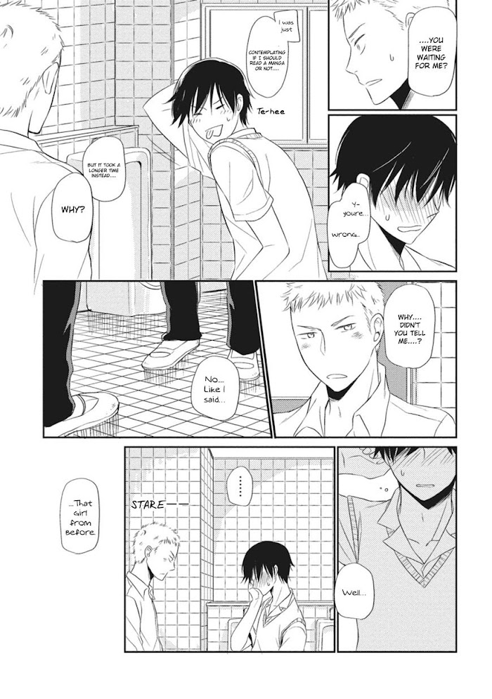 Seishun Girigiri Outline manga summary: With a deep gaze, Oshima received a confession of "I love you!!" from his classmate, Hiyama. And naturally, astounded by his confession, Oshima rejected him as he didn't believe love between men and that made Hiyama became discouraged. Trying to face with an earnest feeling, he's immediately became interested in Hiyama. However, Oshima can't be honest with himself… Are they friends? Or lovers? Be that as it may, both of their relationship will change!!