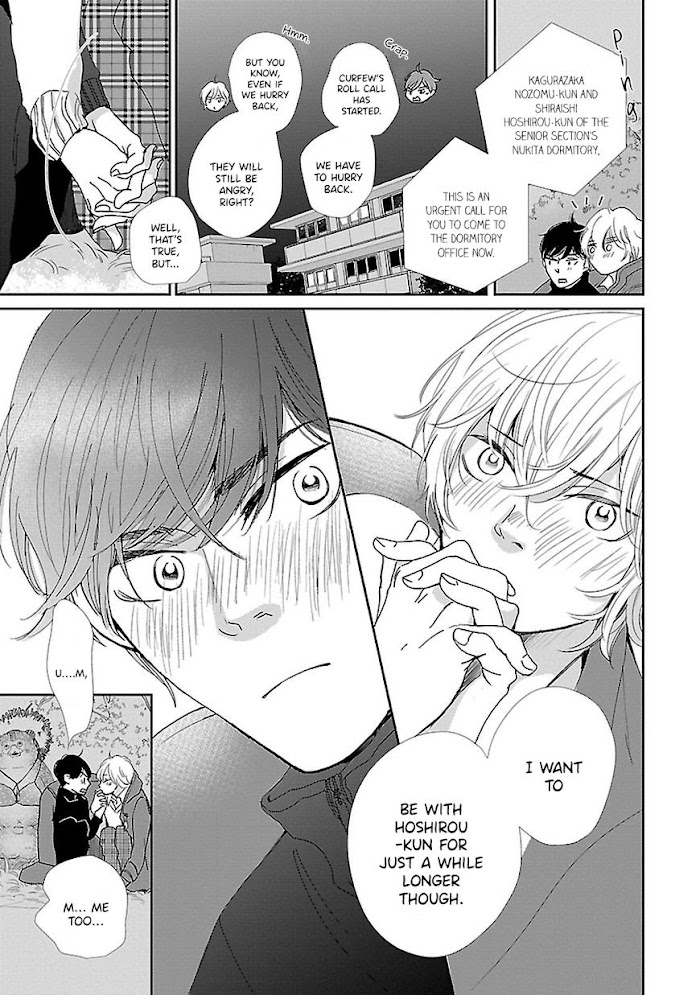 Seishun Sanka! manga summary: From Lemonade Scans: " I got a lover…… man. Hoshi studied intensely to impress a girl but he ended enrolled in a boys school. Hoshiro, who can't give up, pray for the fulfillment of his love to the legendary Otanuki statue. But the school idol witnessed the scene…"