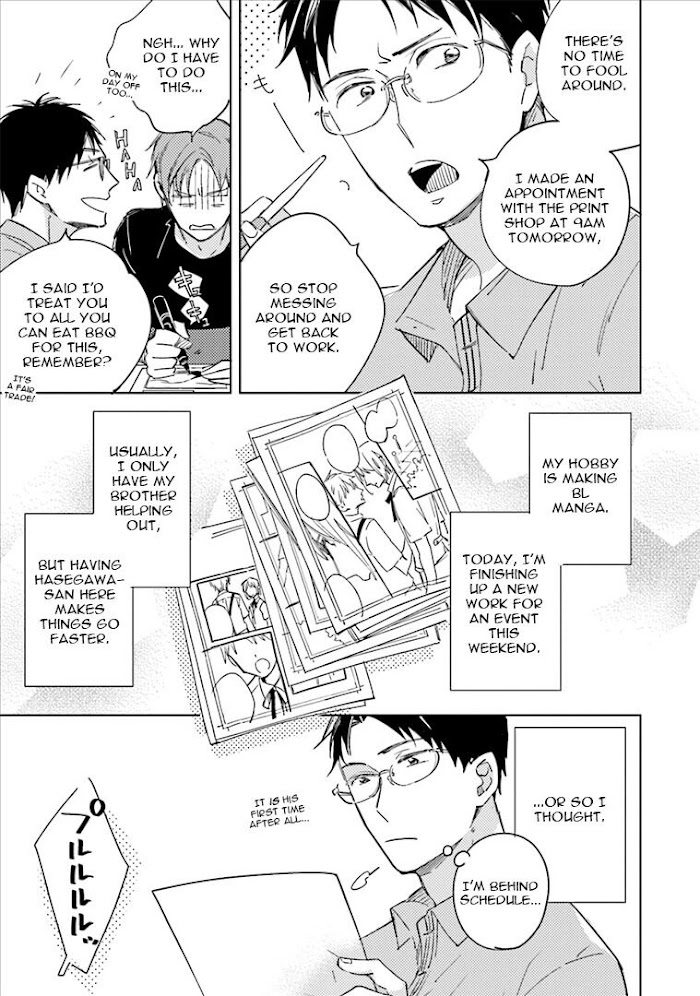 From Baka-Updates: It's only natural for editors to help their authors. So when editor Shishio Masumi is transferred into the BL department, it's up to him to help his author better understand a real, live BL experience with dating, kissing, and even... sex!?