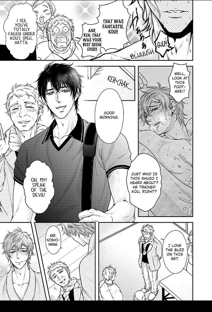"I wonder what it'd be like to have your thick juicy lips working on me? If you were to lick, nibble, and tease me..."Kou is the number one actor in the gay adult video industry, and he has a secret longing for his cameraman, Shuzo, who's like a partner to him.Kou's gay and Shuzo's straight. That is a huge frustrating barrier for Kou and his feelings for Shuzo keep welling up inside him. This eventually leads Kou to fantasize about Shuzo as he's being filmed through Shuzo's camera...