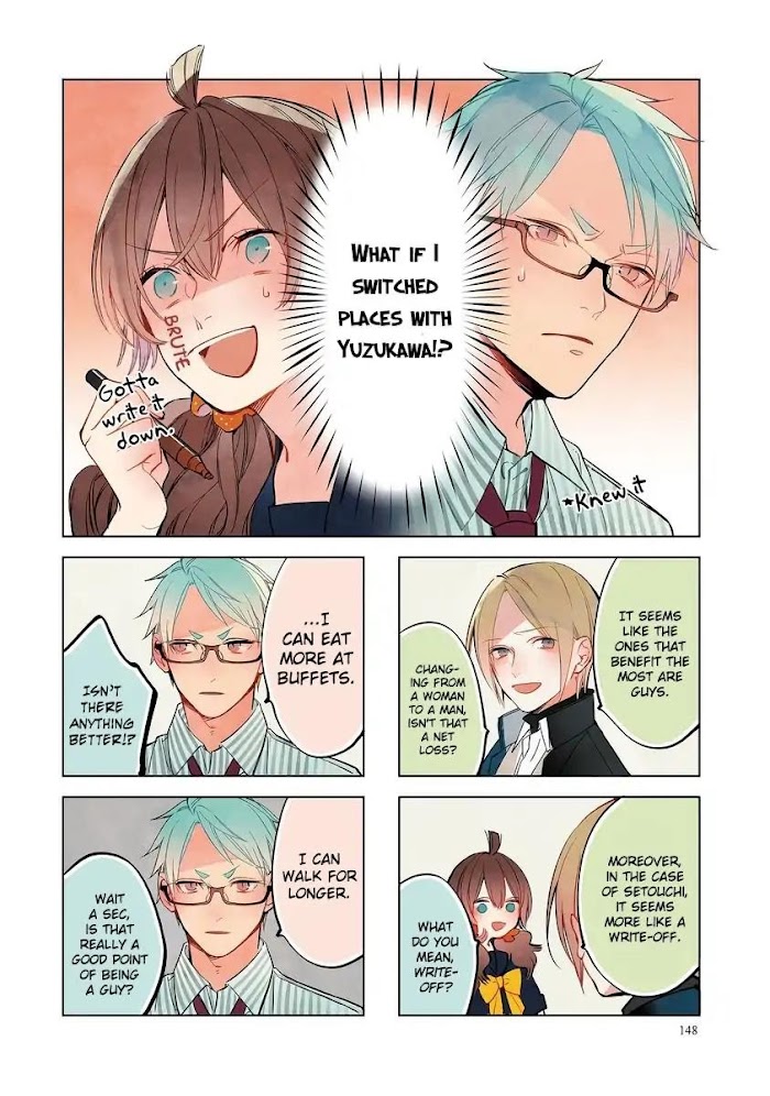 Shinizokonai Agape manga summary: After waking up from a coma due to a traffic accident, 2nd year high school student Setouchi Hiromi finds himself in the body of an unknown girl called Nishimura Sayu. However Nishimura suggests that they spend the rest of their lives in their new bodies..? A tale of how two people cope with the ups and downs of youth, while in each other's bodies!