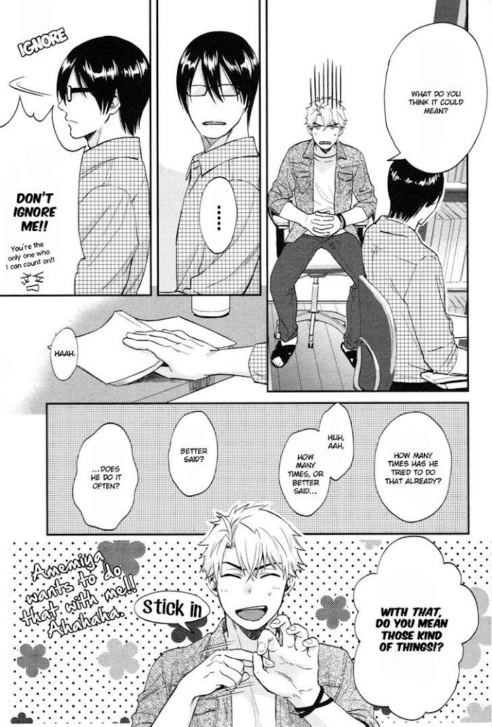 The miraculous sensation of touching a butt by fetish. Exciting X accelerated fondling complex?! An irritating and pounding romance in a men's bedroom! (Source: Fundash Yaoi)