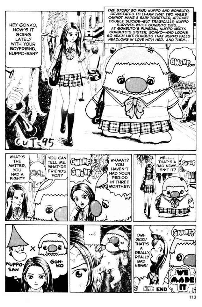 Short Cuts is a manga series by Usamaru Furuya, released in two volumes and originally published in Young Sunday magazine. Each volume contains approximately one hundred 'cuts', short comics which typically span only one or two pages. The primary theme of Short Cuts is Japanese kogal and youth culture, which is tackled with a heavy use of visual jokes, black humor and sex comedy.