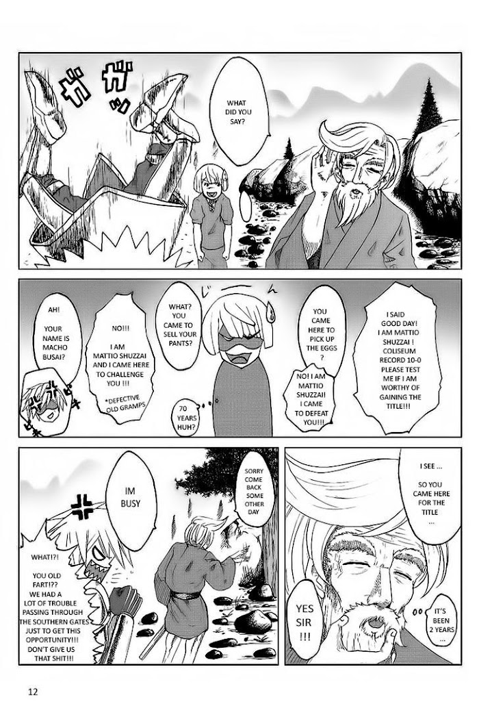 Sir-Ojii-Chan manga summary: Siroji Chan III, a man who never lost a single battle and is shunned among men and held the title "The King of The Battlefield". After retiring at a young age. Many came to challenge/kill him in order to obtain the title of the strongest in the world, but all of them failed. After 70 years, a young man Named Mattio Shuzzai came to him and asked to fight him in order to inherit his title. Will the Old Legendary Man find his heir in this young man?