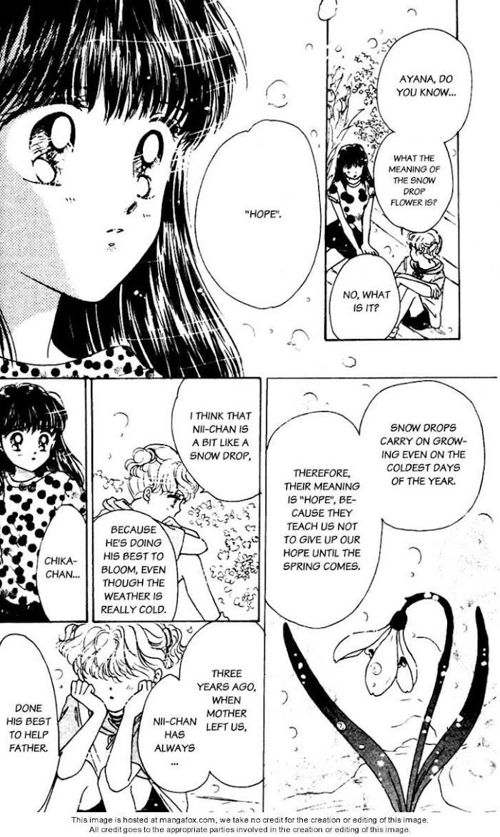 Snow Drop (AKIMOTO Nami) manga summary: From Akimoto Nami's story Les Mille Fleurs a short romantic story about Chika's older brother Shin from when he was in 12th grade and a 10th grader by the name Ayana.