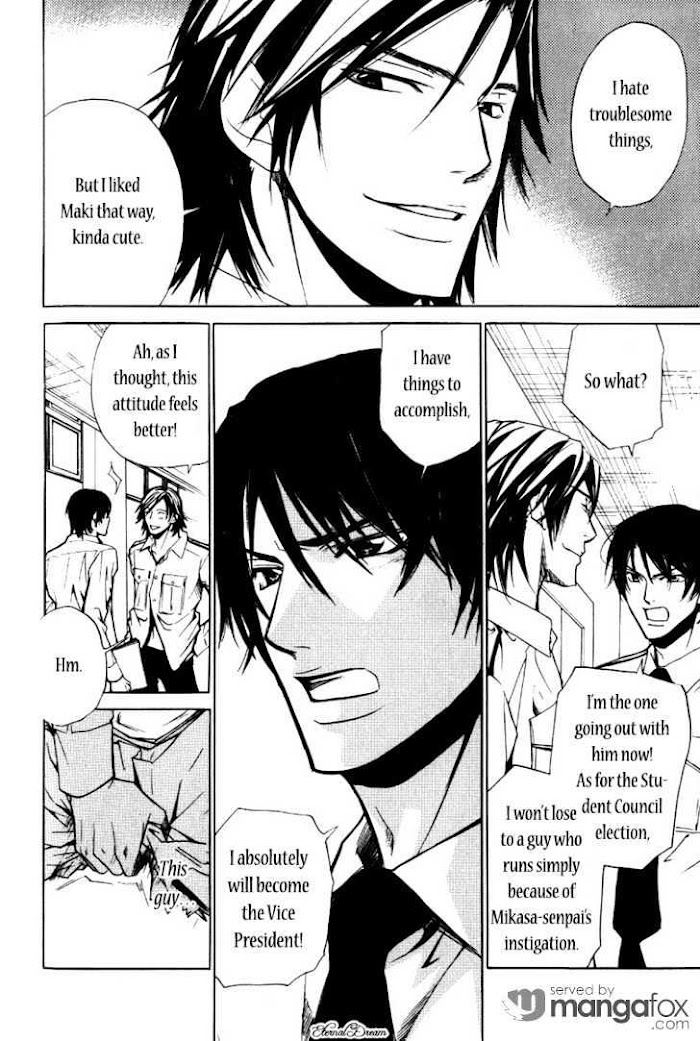 Katsuragi and Aoba are not exactly what you might call the best of friends; in fact, Aoba can't stand his colleague and it's all because Katsuragi seems to get everything he wants. Now, Aoba wants to apply for the Student Council, but he has a problem: he needs the recommendation from an active member of the commitee and Katsuragi is his last hope. Will Aoba be willing to pay the price for that? (Source: MU)