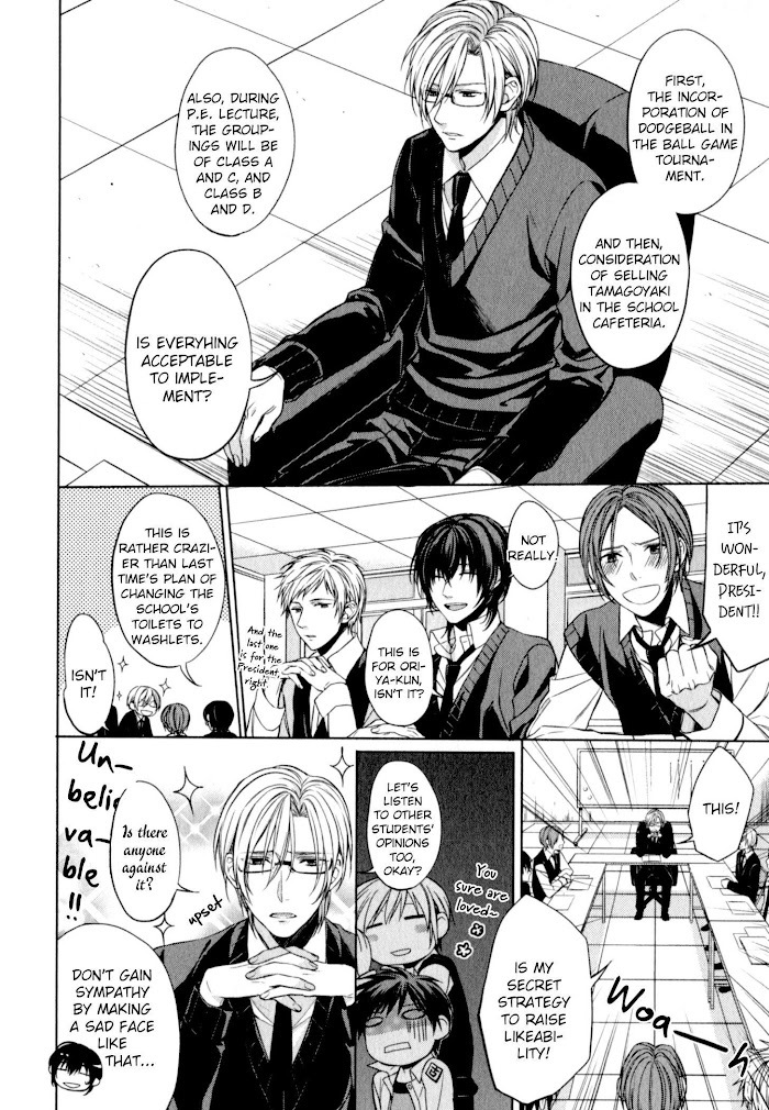 Suki tte Iu na! manga summary: Tokita Eiji, the handsome Student Council President whom the entire student body admires, and Okamoto Oriya, who leads a very ordinary school life. The two don't have anything in common at all, but one day, Oriya suddenly gets romanced passionately by Eiji…! "Oriya, I think that we should get married soon." What will Oriya do with Eiji's perverted love–?!!