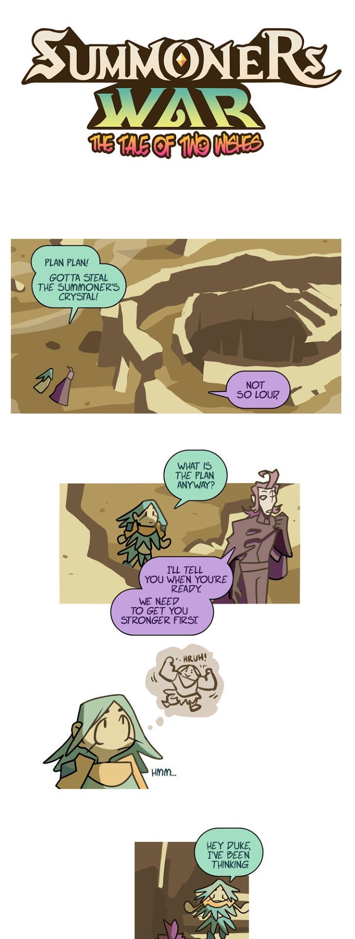 Summoners War - The Tale of Two Wishes manga summary: A notorious summoner with a criminal record and a mysterious past...a fluke of a monster from a summoning gone wrong... There are two players in the story, but only one goal: to steal the Summoner's Crystal! Unspeakable power! All the riches of the world! And...the ability to bring back the dead?