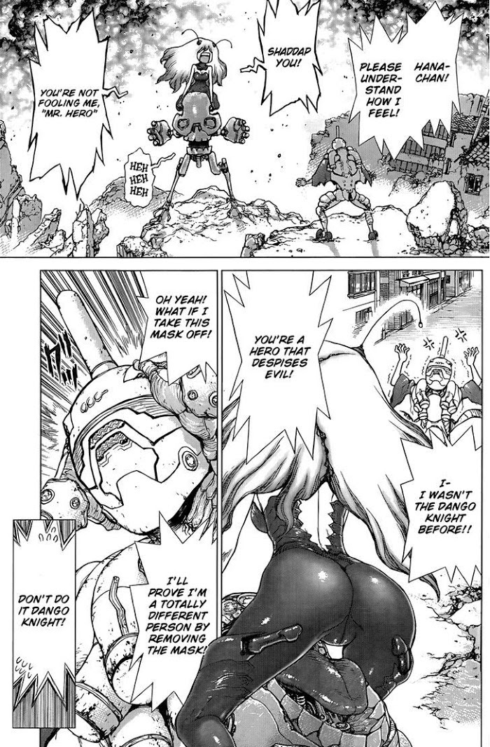 Sun Ken Rock Gaiden - Dango Knight manga summary: After Pickaxe moved out for Seoul he find a strange suit that allow him to become a the Dango Knight. He'll come to face the hyper dangerous evil organisation Dark Roach and its sexy leader...