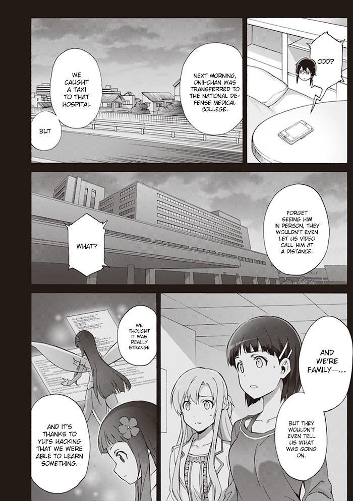 Kirito awakens in a vast, fantastical forest filled with towering trees. In his search for clues to the truth of his surroundings, he encounters a young boy who seems to know him. He ought to be a simple NPC, but the depth of his emotions seem no different than a human. As they search for the boy's parents, Kirito finds a peculiar memory returning to him. A memory from his own childhood, of this boy and a girl, too, with golden hair, and a name he should have never forgotten-Alice. (Source: Yen Press)