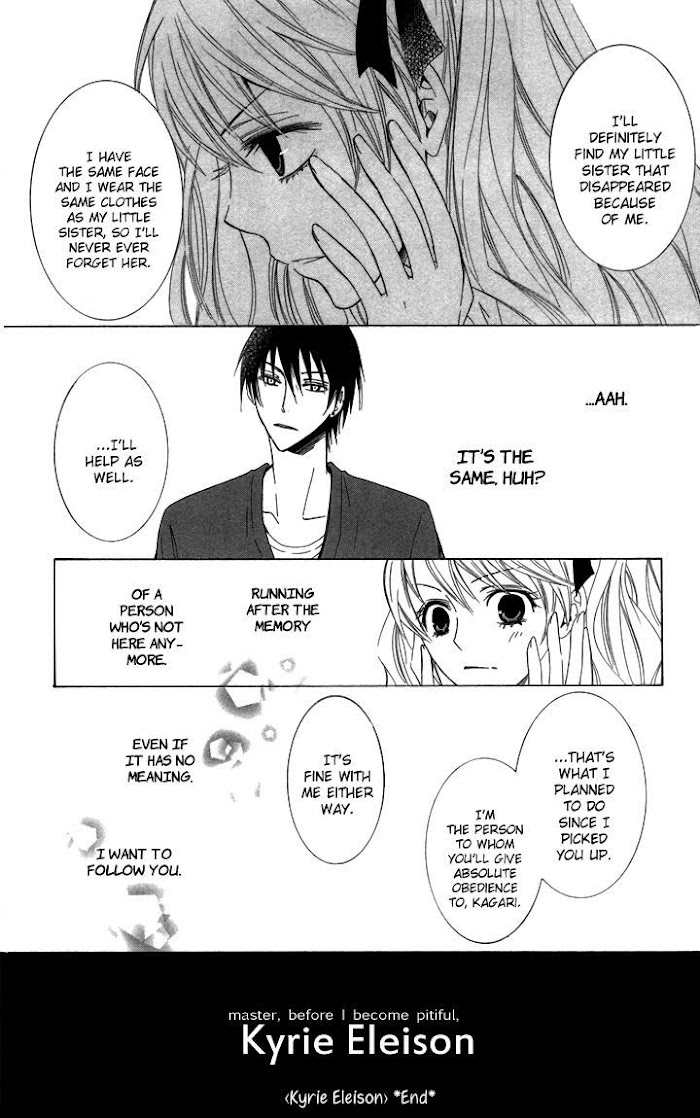One day, Kirie, the daughter of a count's family, found a beautiful, blue-eyed man collapsed in the street. What's more, when he woke up, he seemed to have lost his memory. But, with his blue eyes and pale skin, could he be the rumored "blood-sucking demon?" Also in the volume is story called Haraimasu kedo Nani ka? (Source: Shoujo Crusade)