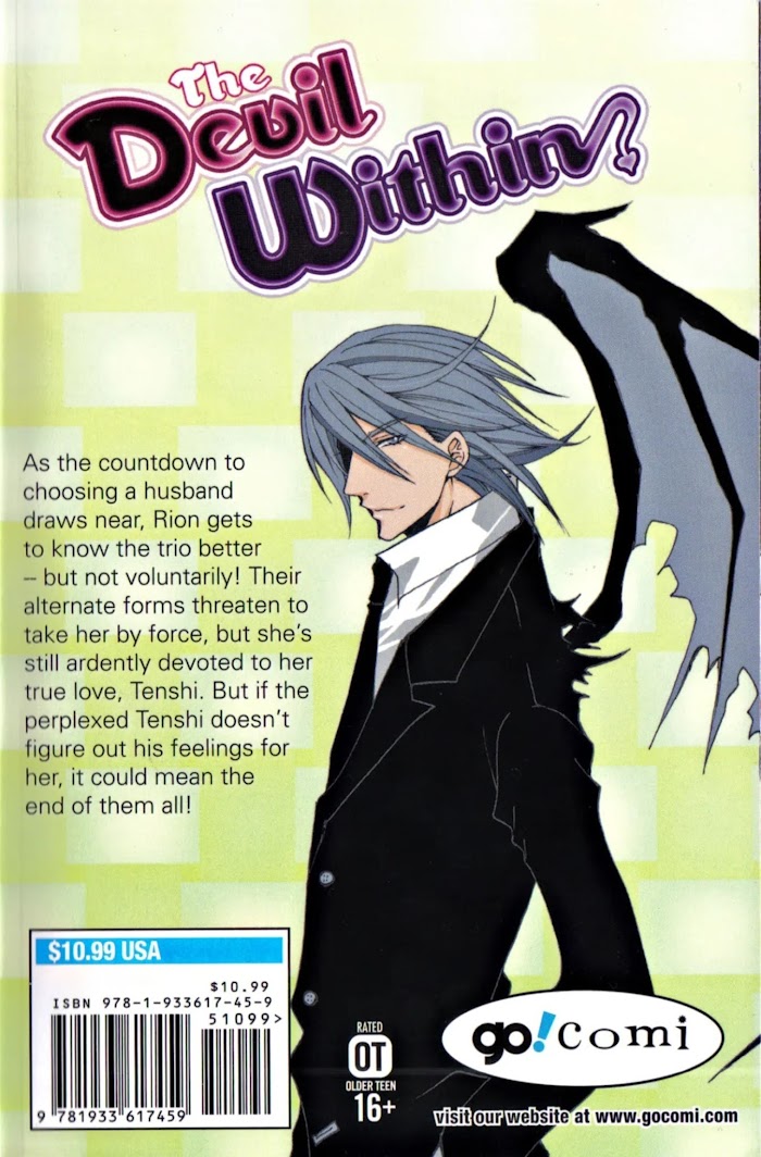 Rion had a traumatic experience when she was a child. Horrified after stumbling upon an adult film, she's convinced that all men are devils -- and it's hard to overcome her fear when her father is the worst one of all! Thanks to him, Rion is thrown together with three different guys and forced to choose one as a fiancé! Suddenly faced with three impatient grooms, can Rion overcome her fear long enough to unveil her father's hidden agenda -- and get out of her impending wedding? (Source: Go Comi)