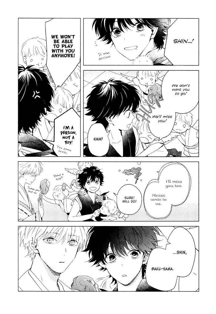 Shin, born to a race of winged messengers, faces life as an outsider due to the tiny deformed wings on his back. Flightless, he endures ridicule and loneliness. His people tend to the needs of the Gods who reside in the same mountains, and unexpectedly, he is tasked with the care of the mysterious God residing at Mountain 32. A troubling future looms ahead as Gods and Messengers have begun to disappear without trace. What danger awaits Shin and his people, and the Gods they care for?