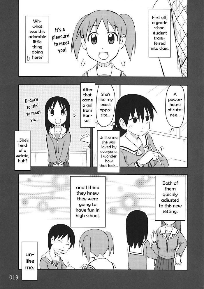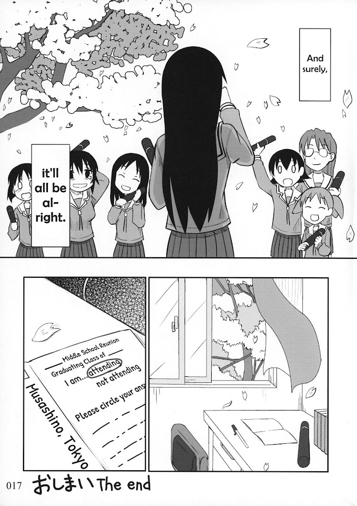 An Azumanga Daioh one-shot from the compilation doujin NO OSAKA NO LIFE 12. Sakaki lived a lonely life in middle school, but will things be the same in high school?