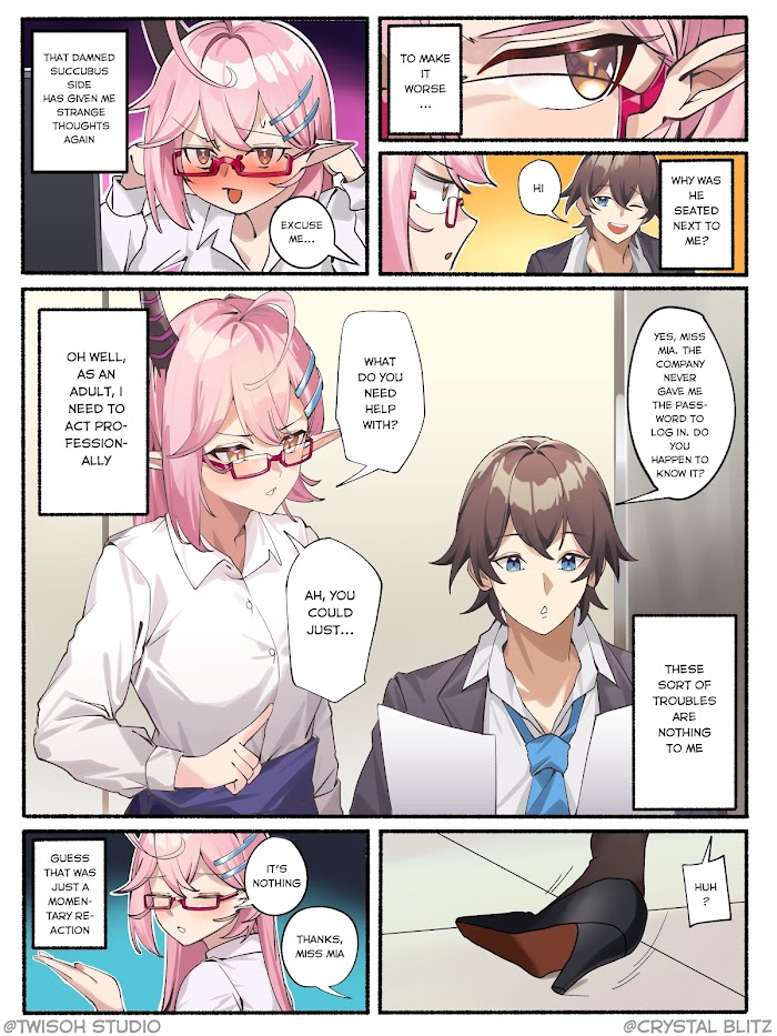Description : Mia is a half-succubus, but she bitterly hates the devil part of her genetics. "I'm not lewd!", she said. "All men are monkey", she said. Yet, karma often comes sooner than expected.