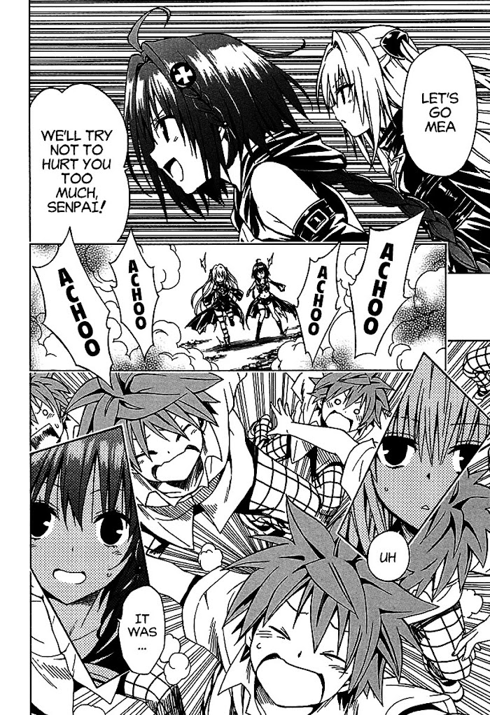 Even though this is a sequel to To Love-Ru, all of our main characters make an appearance along with some new additions. Rito continues to be caught in over the top uncensored ecchi scenarios. The alien Deviluke sisters still use their unique abilities to grab Rito's love confession. Nana and Momo have transferred into the school and meet Mea, who seems to be a worry free and joyful girl. Momo in particular wants to share Rito and create a harem for him. While scheming her plan, she confronts Golden Darkness also know as Yami. They are interrupted by possessed students who begin to fight with abnormal strength. Now the new plot line appears as a mysterious person who's in control of the students tests Yami's assassination skills. Who is this new enemy? (Source: MangaHelpers)