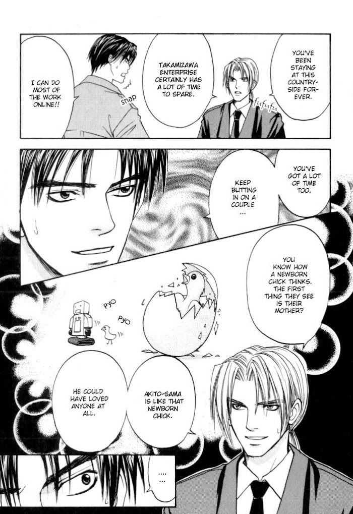 Shin Takamizawa has his own reasons to hate the Tachibana and is aiming for revenge. By coincidence, he finds out that the head of the Tachibana corporation is holding a boy imprisoned, Akito Toba, who seems to be very important to them. How far will Takamizawa go, and what are his plans for Akito Toba? (from B-U)