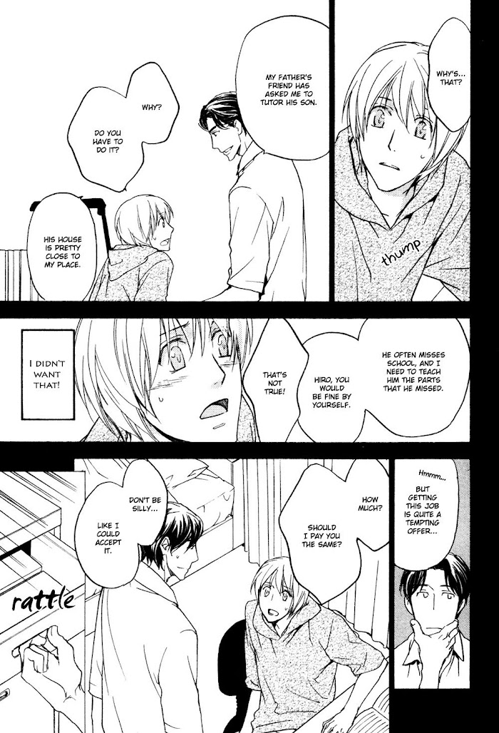 People say first love is the hardest to forget... And it is, at least for Hiroto. As much as he wants to, he just can't get Wataru out of his mind and heart. That guy next door, who is five years older than him, now even has a lover, and clearly is not interested in him. Hiroto has to learn to live with it...and with Wataru as his roommate, forgetting will certainly be the hardest thing to do. (Source: Shinmakoku Scanlations)