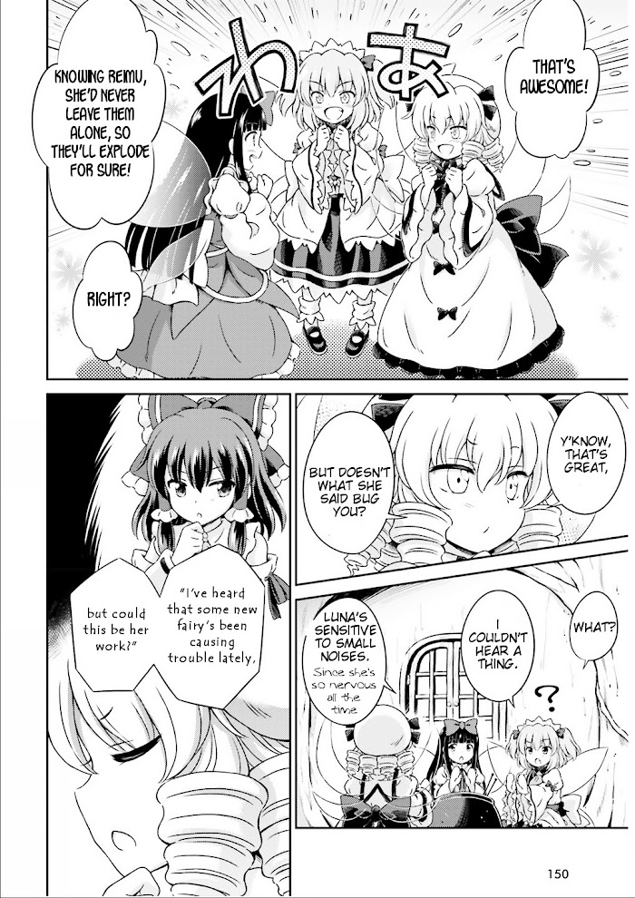 Touhou Sangetsuei ~ Visionary Fairies in Shrine manga summary: The long-awaited return of the classic Three Fairies manga, the Touhou manga that started it all. Sunny, Star, Luna, and newcomer Clownpiece hang out in Gensokyo and play pranks. What more do you want?