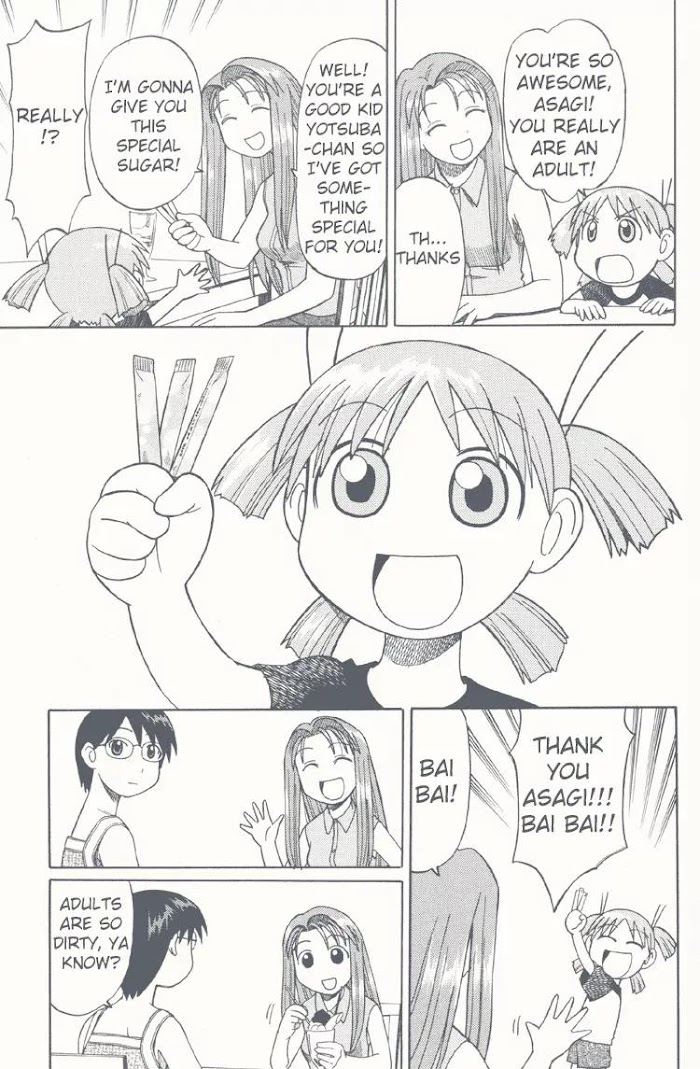 Kiyohiko Azuma's Try! Try! Try! follows the adventures of a weird girl named Yotsuba whose bizarre antics baffle her friends and her father. The characters in this comic later went on to appear in the monthly Yotsubato! serial manga currently running in Dengeki Daioh magazine. (Source: M-U)