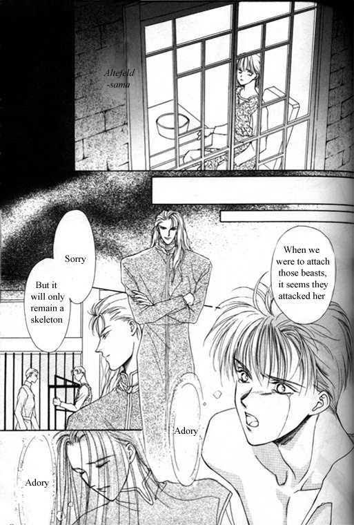 A bunch of stories all revolving around a red haired man, Iriya. All his life he was discriminated against and called a demon because of his hair color. 1) Innocent Eyes: Iriya becomes the tutor for the crown prince of a kingdom, who actually says his hair is pretty... 2) The Moonlight and the Way of Stars (Tsuki no Hikari Hoshi no Michi): Trouble in the palace. 3) The Beast Who Sees a Dream at Night (Three chapters): Adventures... Extra : Splash : Iriya's childhood (Source: M-U)