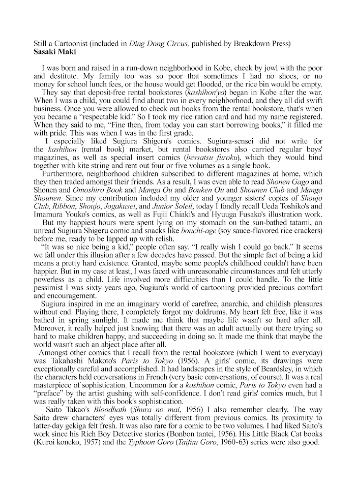 うみべのまち 佐々木マキのマンガ1967-81, Ding Dong Circus, A Dream in Heaven, The Ballad of Henri and Anne, Seventeen, Seaside Town, The Town Horse, Little Boy, Cute Little Boy, The Vietnam Debate, Sad Max, Summer Course, Harbour Marie, Chee-Chee Hat, Eyeball of the Dese