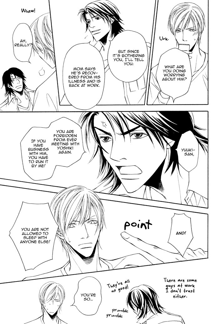 When his senpai breaks a leg, Serizawa agrees to sub for him at the design firm. He doesn't expect to see Ikuta, a face from his past. Though Ikuta seems as gentle and kind as ever, he doesn't remember Serizawa. But outside of work Ikuta's personality is strikingly different. Is it really the same person, or did Serizawa never know the real Ikuta? (Source: MU) Included one-shots: Volume 1: Tsugunai no Kanata Volume 2: Love & Action