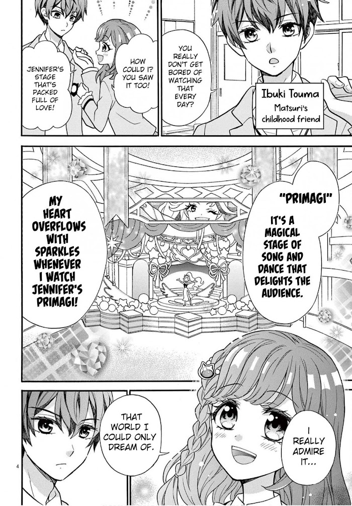 Middle-school first-year student Matsuri Hinoya loves festivals, and she dreams of one day being able to star in "PriMagi," a magic-like form of stage entertainment borne from song, dance and fashion. That day arrives when the hyper-spirited, trouble-making magician Myamu arrives from the magical realm and scouts Matsuri for PriMagi. Together, the two compete with rivals to rise to the top of PriMagi.