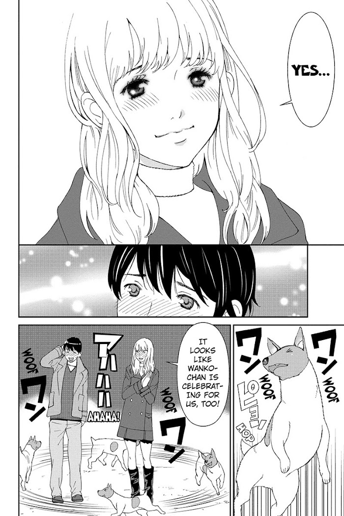 Just after being dumped by his girlfriend for being wishy-washy, our hero meets a high school girl... with dog ears? Is she a dog? A human? She's wide open, rather naive, and with her around, it's just one crazy day after another. Romantic comedy author Hiroyuki Tamakoshi, author of "Boys Be," brings us the unlikely love story of a hopeless office worker and the extraordinarily beautiful girl who lives with him. Take care of your doggy! (Source: MangaBox)