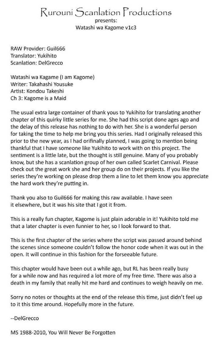 "Miss Kagome, my guardian, please come inside." Chant this spell and I, Kagome, will be your guardian.... Shingo was visiting her mother that was hospitalized when he was introduced to an odd lady named Kagome. Kagome claimed to be his guardian. Who is Kagome? Furthermore, what is Kagome? (Source: MU)