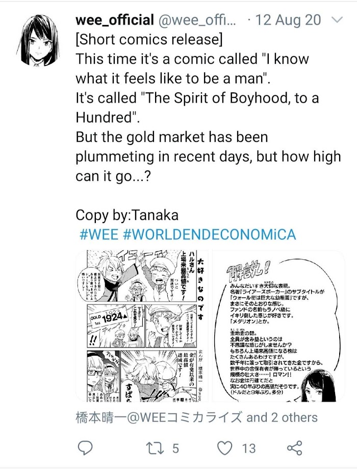 Roughly 16 years after the people who emigrated to the Moon had settled themselves. An age where a great number of people are chasing their wild dreams within the great skyscraper at humanity's frontier. A young boy named Hal, born and raised on the Moon, is one of those people chasing his wildest dream. His dream, is to stand where no man has before. In order to do so, he needed capital. A ludicrous amount of capital. The boy named Hal was facing a place that gathered up people's desires. Sometimes it granted them, and sometimes it crushed them mercilessly. There are only two key rules that govern that land. "The first rule, is to never take a loss. The second rule, is to never forget the first." Only those who followed these rules were able to obtain enormous wealth. The stock market. A place that has gathered crowds of persistent men and women for centuries.(Source: WEE Official)