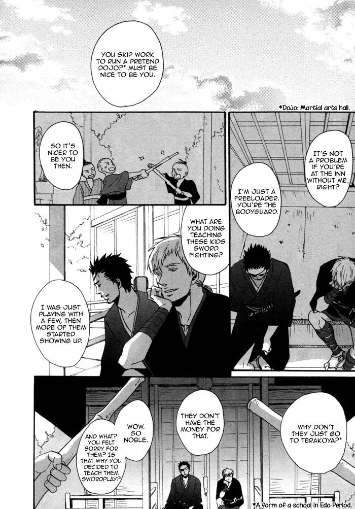 Saiga is a reserved leader and the strongest in a group of rough men. He has to deal with a new member that doesn't seem to harmonize with the group; this is Shikon, a shameless, conspicuous, witty youngster that, despite his looks, holds equal ability to the leader and, to Saiga's discomfort, seems to have taken an unusual interest in him. This is a historical drama that presents the fortune and mishaps of two mercenary samurai who work as contracted assassins--the life of people with no place to go...