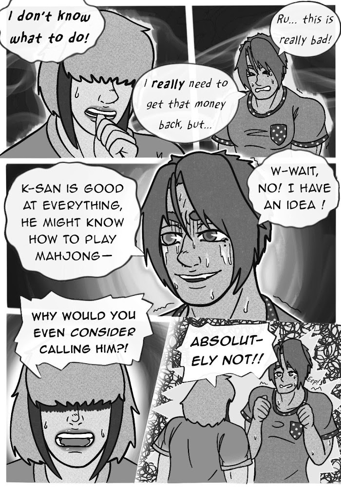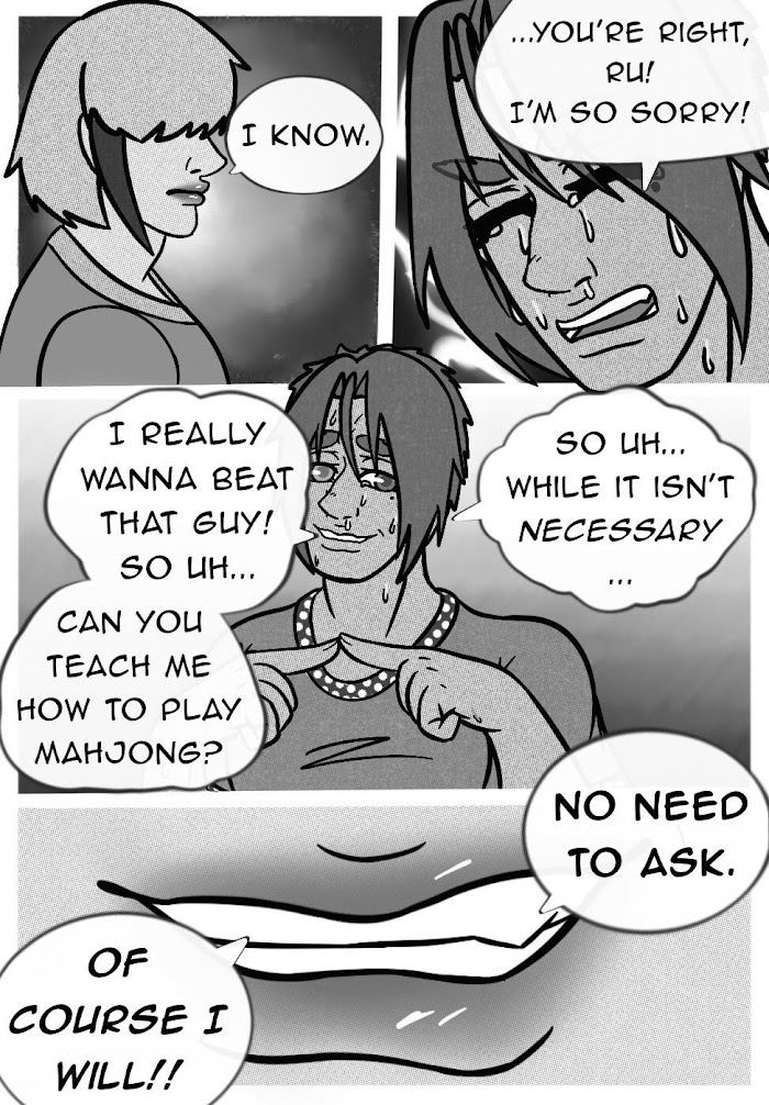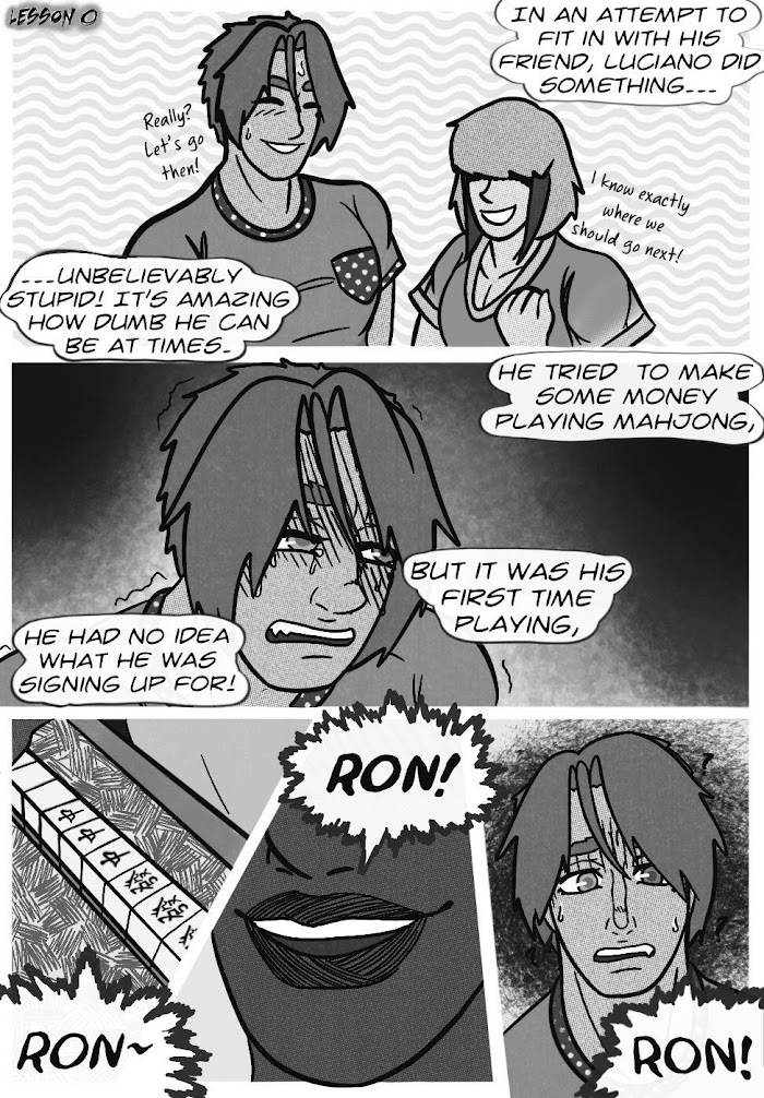 Luciano, a complete idiot, tried to make some money playing mahjong despite not knowing how the game worked at all. Of course, Luciano lost a lot of money because of this (don't make bad decisions guys). He was going to ask his dad to help him get the money back, but his friend/mentor, Ru, stopped him from doing it and told Luciano to fight for himself. This led to Luciano asking Ru, his dad, and some other guy who's just there to be the fourth player and to be hot, how to play riichi mahjong. And you get to learn it too, and/or criticize how Luciano was taught how to play it (constructive criticism would be greatly appreciated) This is mainly for my friends/family who are new to riichi mahjong, so I don't implode from having to teach people over and over again.