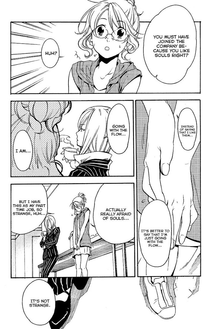 Touno Mariko started seeing ghosts on the day of her grandmother's funeral 5 years ago. During a visit to the graveyard, she accidently destroys a tombstone. In order to not get cursed, she has to back for it back and in order to due that, she starts working for the Soul Traveling Agency.