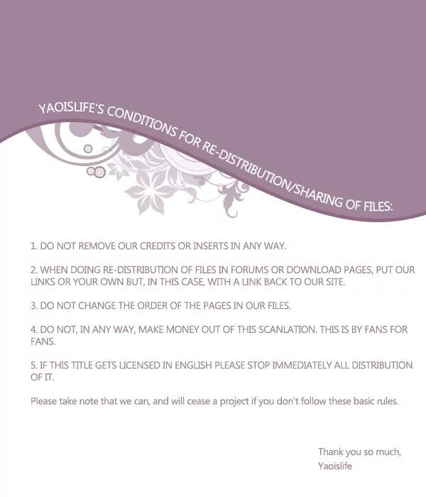 Featuring events such as Genma being immature and making Ryuusei drink more than he can handle, Himi begging Genma until his anger subdues, Asari teasing Shoui, and Waki trepassing into Raizou's bedroom. This volume contains spin-offs of the -ZE- series. Most of these were created for autograph events and freebies during purchases. There's also a 26-page compilation of never before seen new material! No matter where you open it, this is a -ZE- full of love scenes!♥ (Source: Yaoi Is Life)