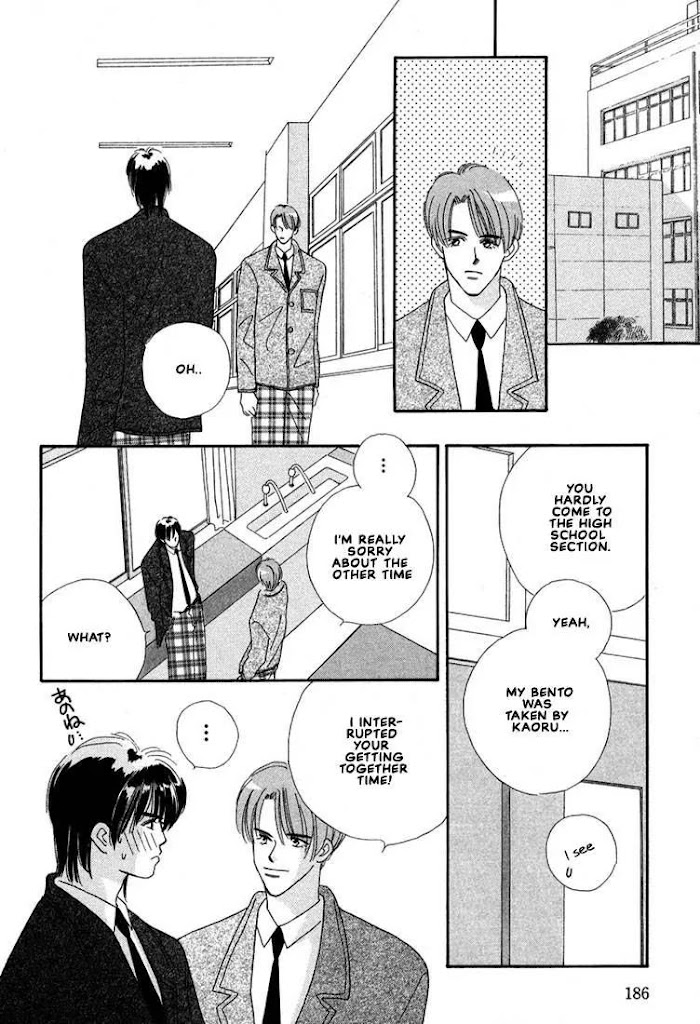 Collection of oneshots. 1) A strange man hired a younger man to act as his new lover to get rid of his ex-boyfriend who's stalking him. It turns out the younger man is a student in the class of the older man... Sweet and a bit of angst. 2) True Blue - Momo and Harumi are childhood friends, and Harumi has always relied on Momo. One day he sees Momo walk into a hotel with an older man. 3-5) The Lover in the secret room - Kou and Natsume are good friends and also happens to the Captain and Assistant Captain on the schools soccer team. Natsume has always liked Kou, until he finds out that Kou is going to study abroad in France. Oda, who's also on the team has liked Natsume from afar. He confesses his feelings for him and then chains him up in his home. (slight bondage) 6) Kaoru and Sei have been living together ever since Kaorus' dad was sent overseas for work. Kaoru catches Sei making out. Sei tells him that he likes someone else, but he can never be with him. (From: Manga Fox)